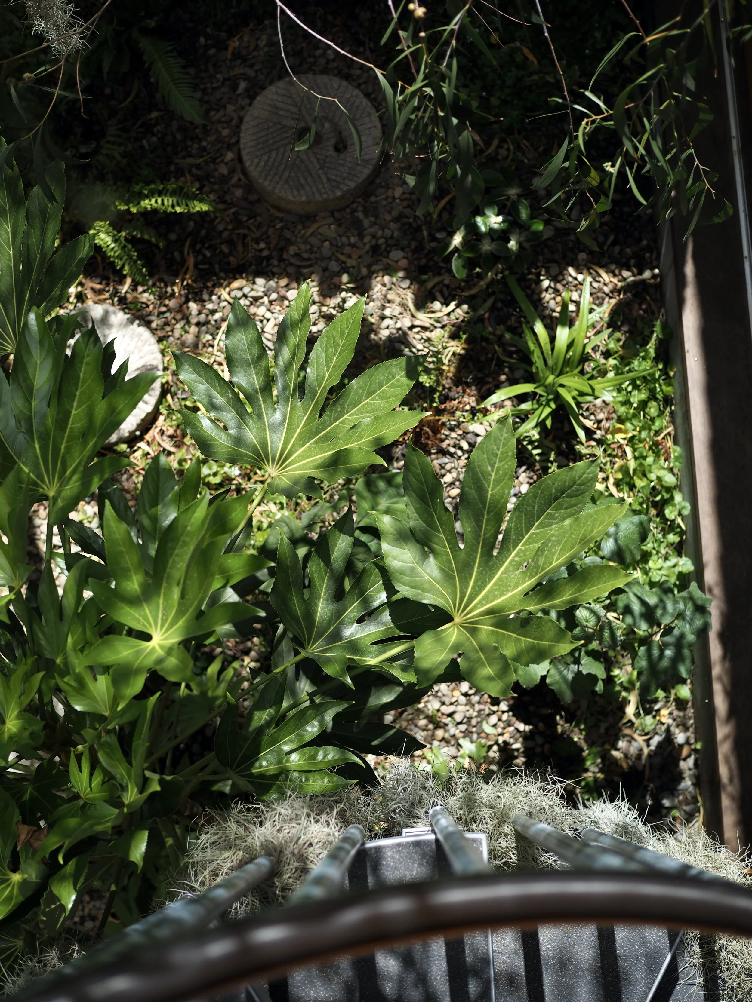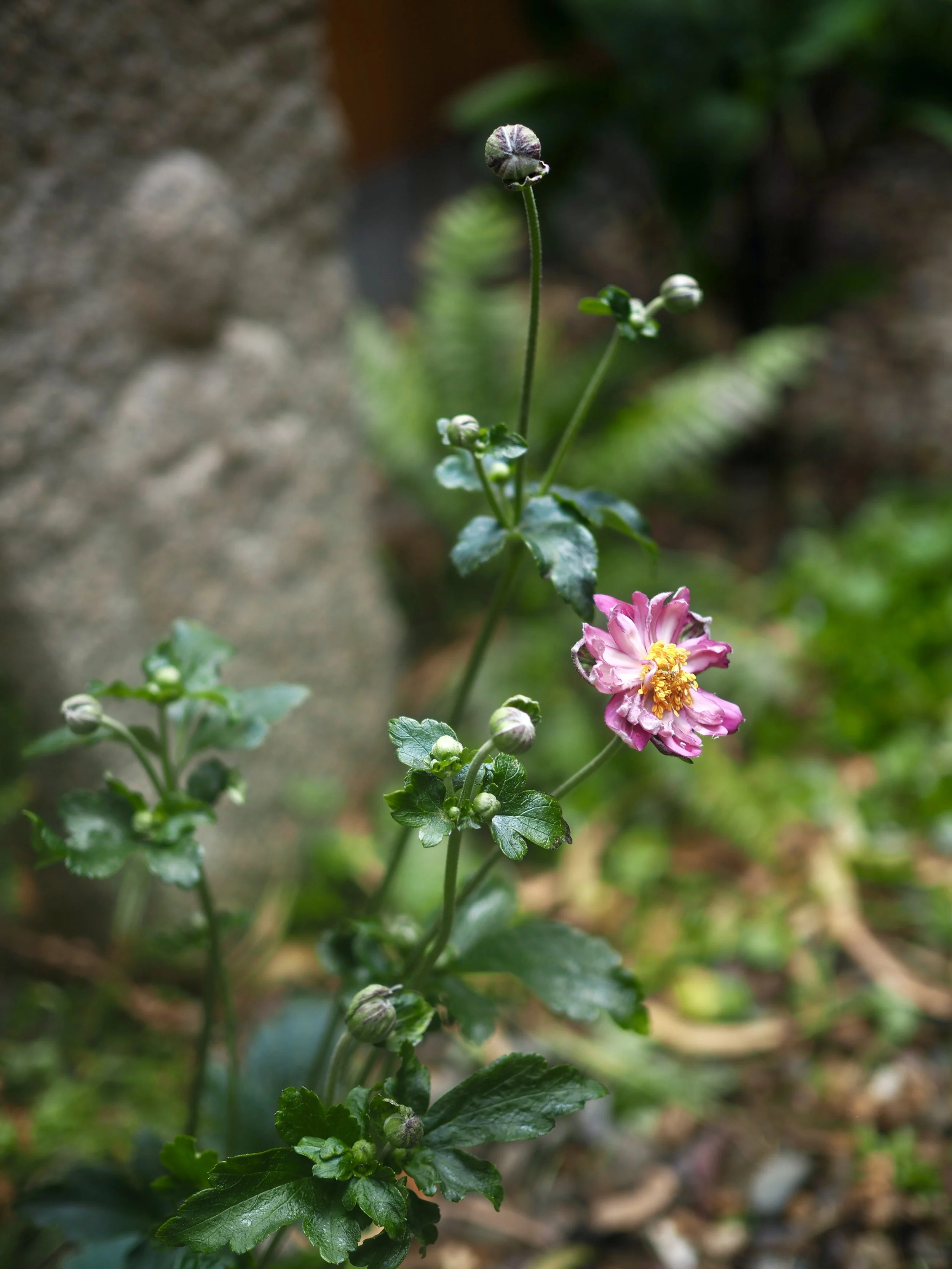 Materials & Plants: River Pebbles / Lightwood / Rasp Fern / Native Violets / Windflower